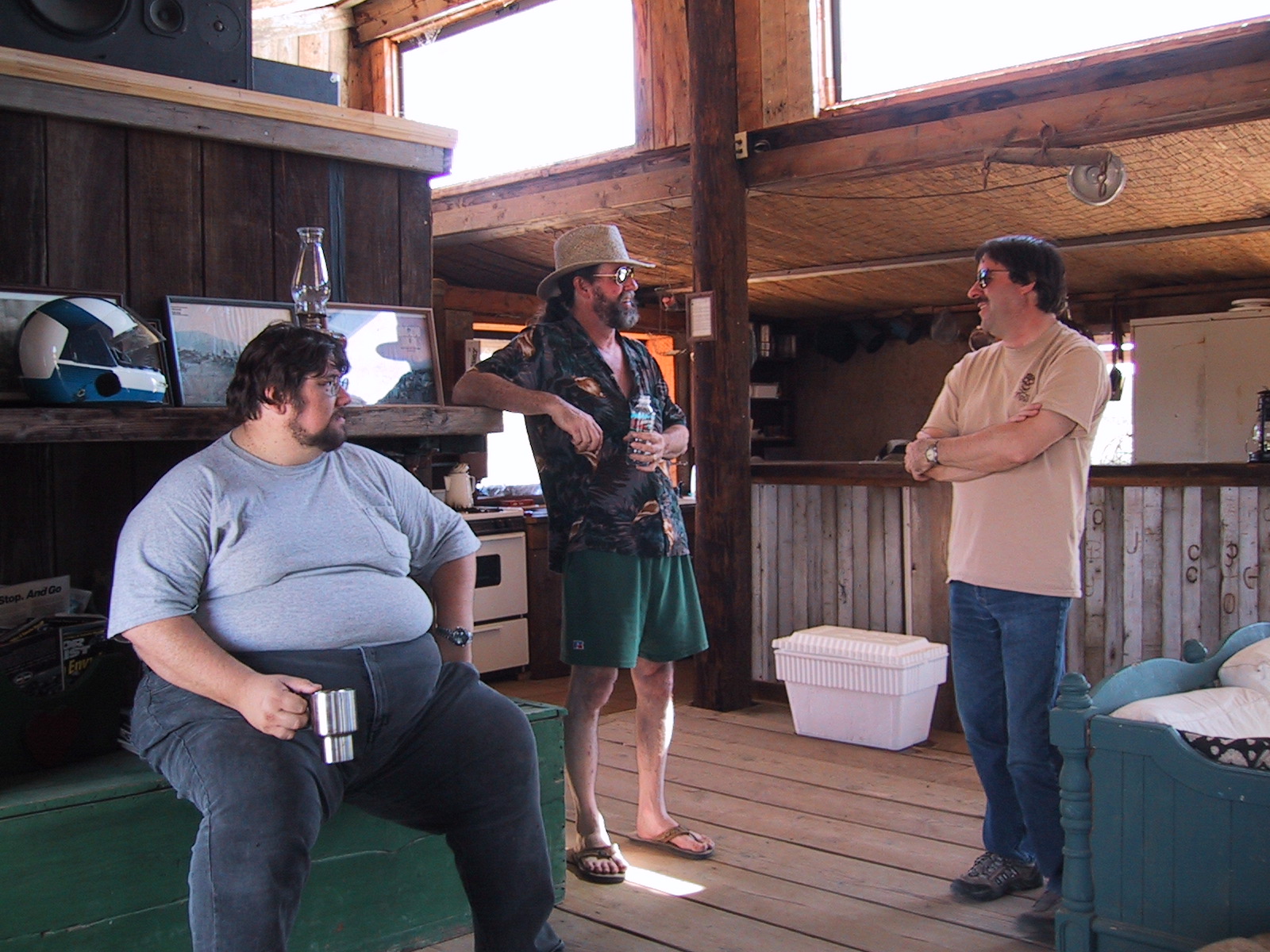 Tejas, Jerry, and Ed plotting the overthrow of the known world - Ed's got the rocket fuel, Tejas has the time, Jerry's got the insanity.