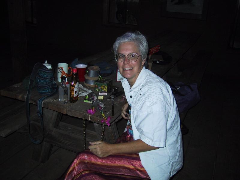 Lissa Shoun ("I'M NOT IN CHARGE, I'M NOT RESPONSIBLE") preparing for the evening's now-traditional show.