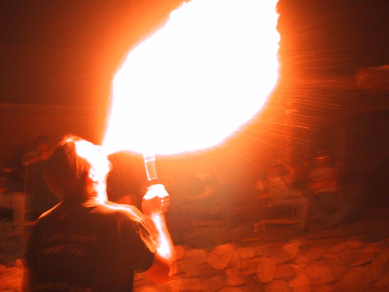 Charles breathes more fire - nice side shot with trailers going off to the right.